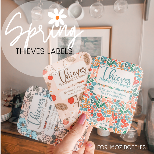 Floral Thieves Labels || Thieves Cleaner || Young Living Labels || Waterproof ||